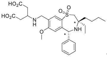 Linerixibat is an orally administered IBAT inhibitor. Linerixibat has the chemical name 3-((((3R,5R)-3-butyl-3-ethyl-7-methyloxy-1,1-dioxido-5-phenyl-2,3,4,5-tetrahydrobenzo[f][1,4]thiazepin-8-yl) methyl)amino)pentanedioic acid. The molecular formula of linerixibat is C28H38N2O7S with a molecular weight of 546.68 g/mol. Linerixibat has the following chemical structure: