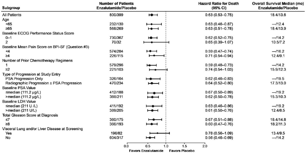 2 Hazard Ratio is derived from an unstratified proportional hazards model. Hazard ratio <1 favours enzalutamide.