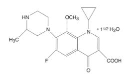 ZYMAXID is a quinolone antimicrobial topical ophthalmic solution for the treatment of bacterial conjunctivitis. Its chemical name is (±)-1-Cyclopropyl-6-fluoro-1,4-dihydro-8-methoxy-7-(3-methyl-1-piperazinyl)-4-oxo-3-quinolinecarboxylic acid, sesquihydrate. Its molecular formula is C19H22FN3O4 · 1½ H2O and its molecular weight is 402.42.